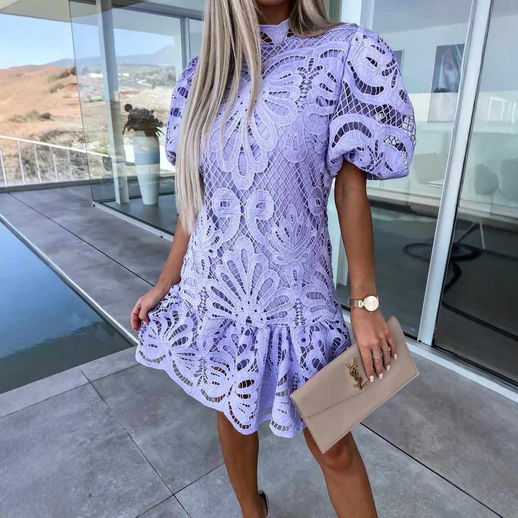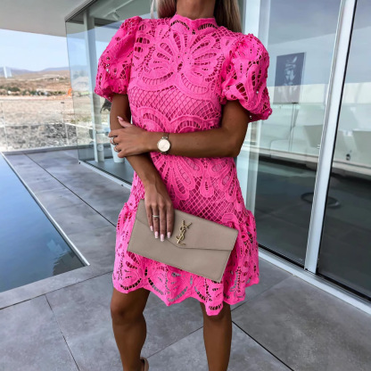 European and American cross-border 2025 new independent site Amazon sexy hollow-out water-soluble lace elegant commuter dress