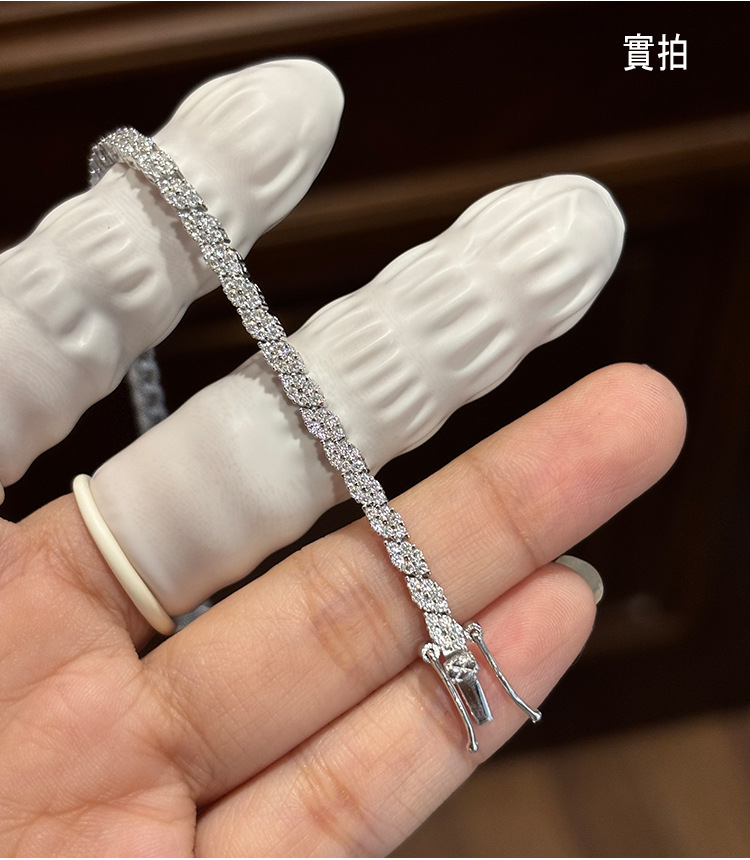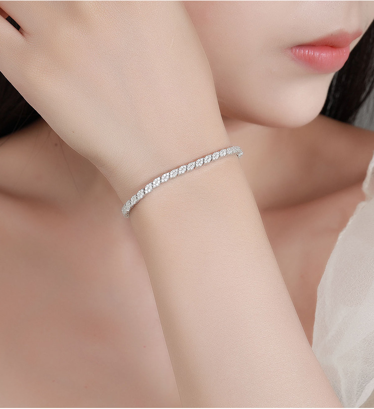 Moissanite prismatic bracelet for women, made of sterling silver, with a niche design, fully encrusted with diamonds, simple and versatile, eye-catching and sparkling, cross-border jewelry